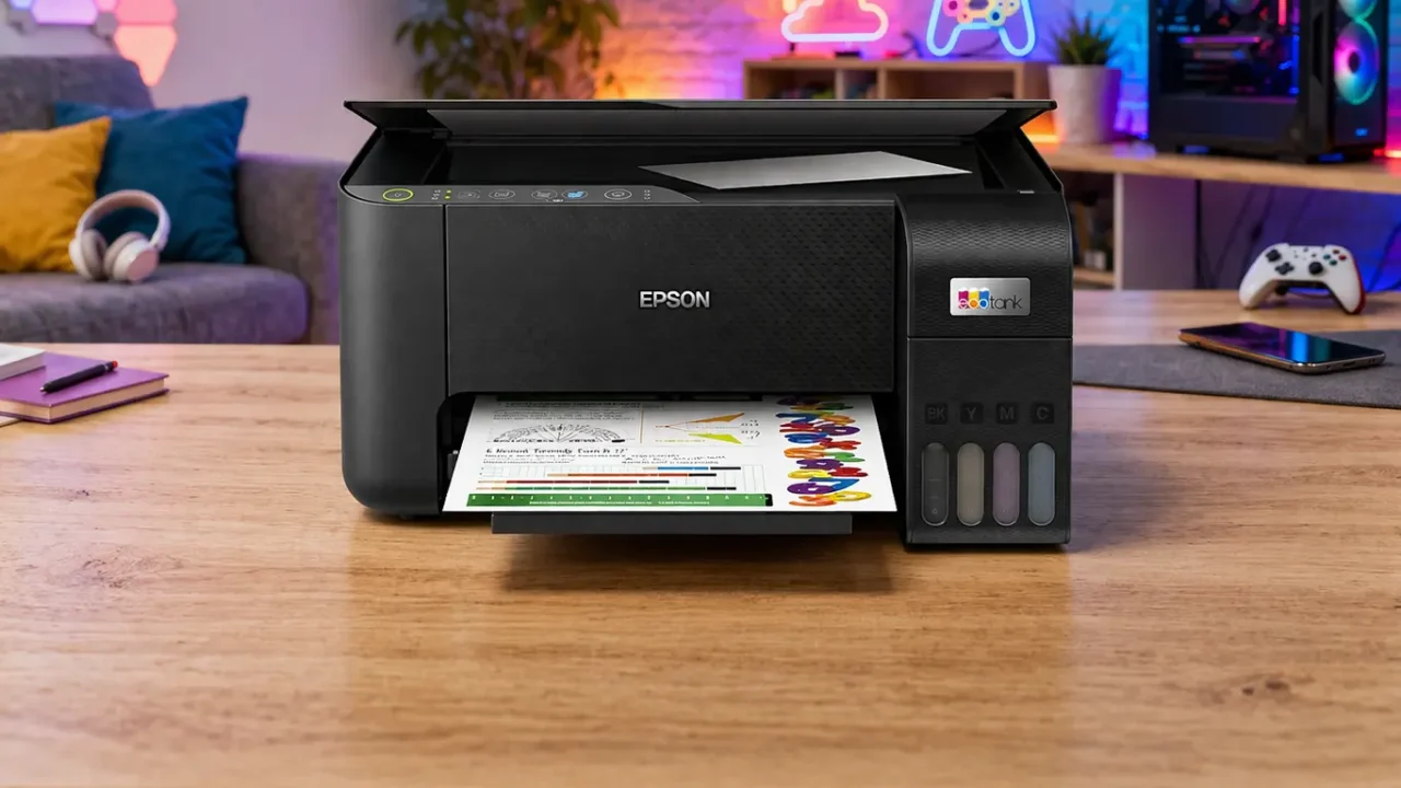 A Epson EcoTank L3250 é uma multifuncional que combina tanque de tinta colorida e conectividade sem fio, oferecendo uma proposta prática para quem busca imprimir, copiar e escanear no cotidiano. O sistema de tanque sugere menos paradas para reposição, enquanto o Wi-Fi Direct permite enviar documentos diretamente do smartphone ou tablet, sem depender de roteadores.